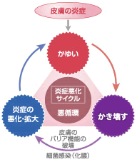 症状が悪化するとさらにかゆみは増し、「またかいてしまい、悪化する」という炎症の悪化サイクルに陥ってしまいます。