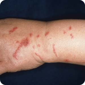 原因物質の毒性や刺激が強いときには、その部分がただれることもあります。非常にかゆみが強いため、かきむしることでさらに症状が悪化することがあります。