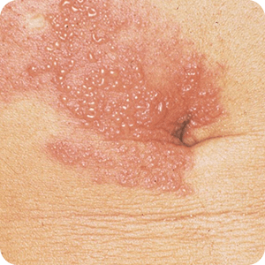 神経の流れに沿って皮膚の赤みと小水疱(小さな水ぶくれ)を伴った発疹が帯状に現れます。水ぶくれは破れて潰瘍(かいよう)になることもあります。最後はかさぶたになり、たいてい2~3週間で治ります。炎症がひどい場合は色素沈着を起こすことがあります。