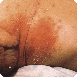 わきの下、手や足の指の間、内股、乳房下など通気の悪い部分が感染しやすく、カンジダ性おむつ皮膚炎はその代表的なものです。