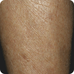 - ひじやひざ、すねなどがカサカサして、粉をふいたり、皮膚表面に光沢を伴うしわができることもあります。