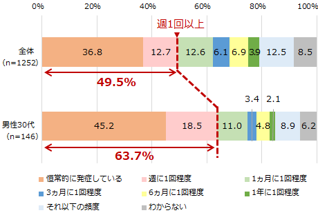 働き盛りで、ストレスが多い、生活が不規則になりがちといったことが大きく影響していると考えられます。