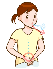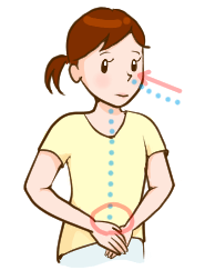 臍の下に手をあて、体の力を抜いたまま、口からゆっくりと息を長く吐いていく。