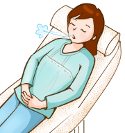 下腹部を膨らませる気持ちで、鼻から息を自然に吸っていく吐く息に気持ちを落ち着ける効果があるので、ゆっくりと意識しながら息を吐きます。この時に、体の緊張も息とともに吐き出すようにイメージしながら脱力すると、リラックス効果が高まります。