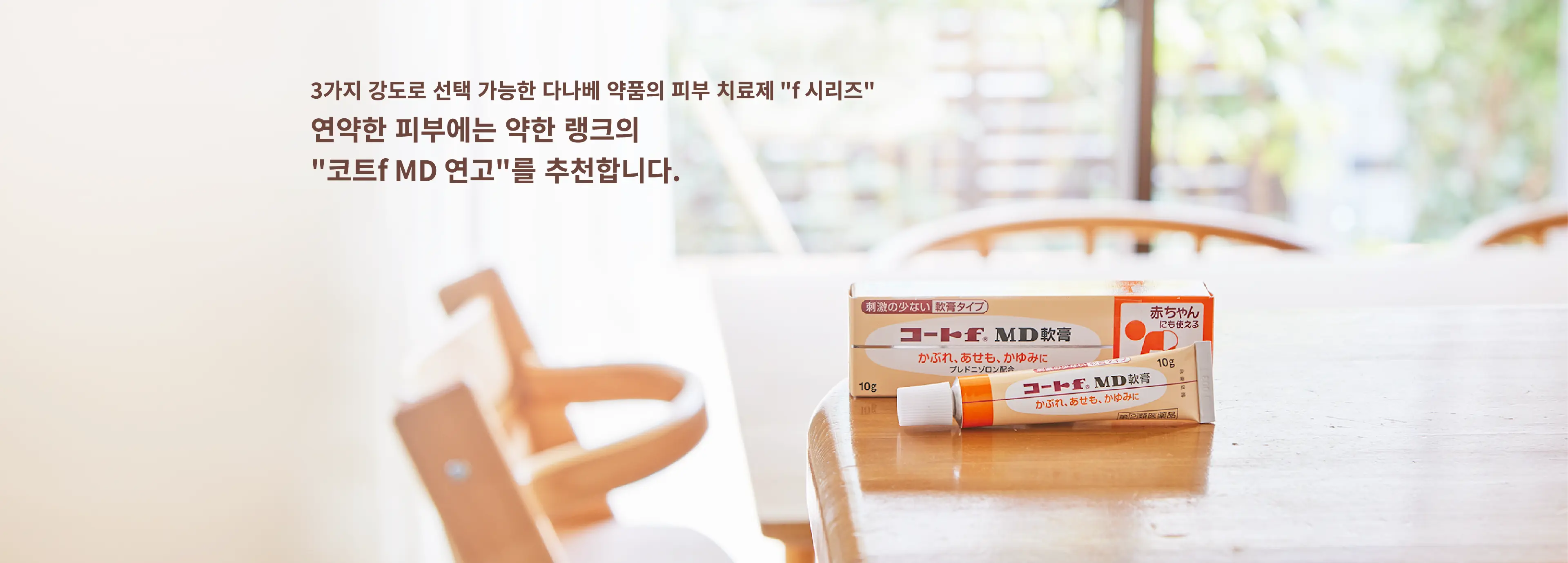 「'"코트f MD 연고"는 효과가 부드러운 외용 스테로이드 "프레드니솔론"을 함유하고 있습니다. 또한 향료, 착색료, 방부제, 알코올을 첨가하지 않아 연약한 피부에 적합합니다. 더욱이 항염증 성분 "글리시레틴산"도 함유되어 있으므로 "프레드니솔론"과 함께 접촉성 피부염, 땀띠 등의 염증을 억제합니다.