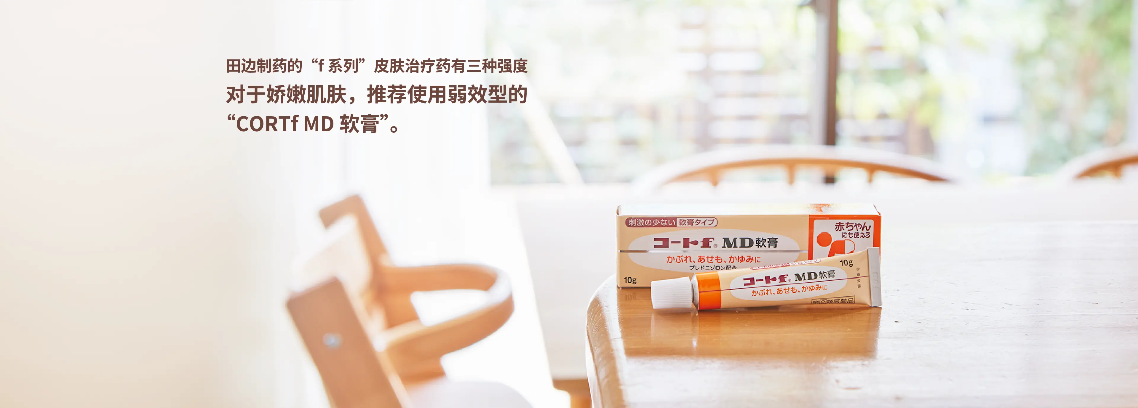 “CORTf MD软膏”含有温和的甾体外用药“泼尼松龙”。 它不含香料、色素、防腐剂及酒精,因此适合娇嫩的皮肤。 此外,它还含有抗炎成分“甘草次酸”,与泼尼松龙协同作用,有助于抑制斑疹和痱子等炎症。