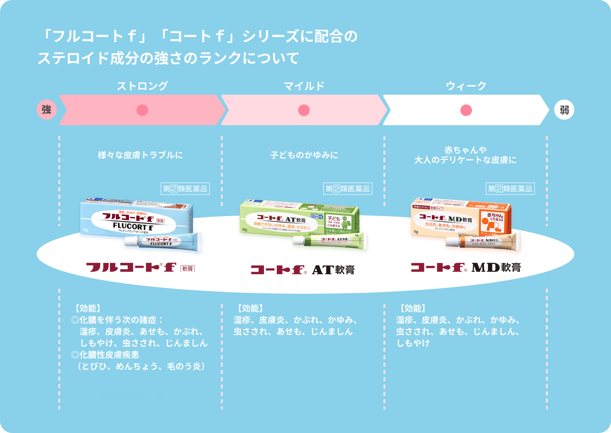 フルコートfは「ストロング」ランクステロイド成分配合。