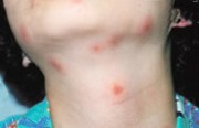 2.さらに、紅斑や腫れ、丘疹が生じる。
