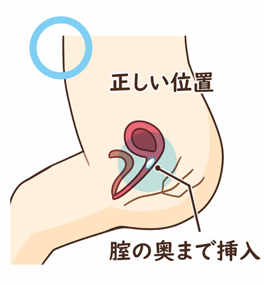 腟錠の先が細い方から腟内に入れ、斜め後ろ方向へ挿入します