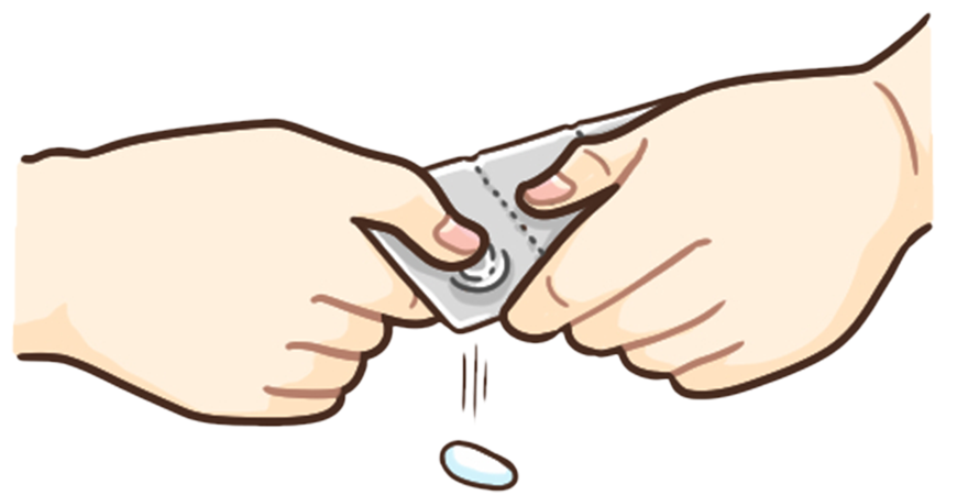 指先で強く押して裏面のアルミを破り、腟錠を取り出します