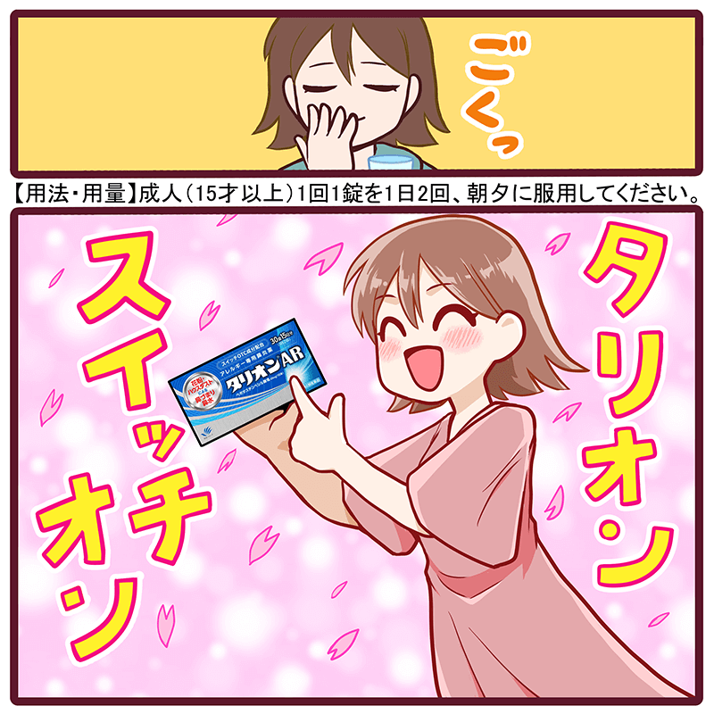 花粉飛散予測日から、または、症状が出始めたら早めに服用を始めると効果的です。