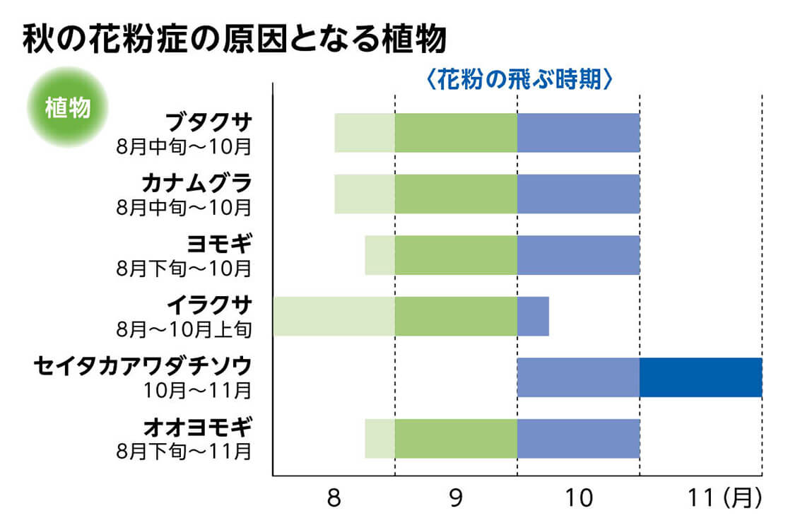 花粉症といえば、スギやヒノキによるものというイメージがあるかもしれませんが、実はそれ以外にも花粉症を引き起こす植物はあるのです。この時期に止まらないくしゃみや鼻水に悩まされているという人、それはもしかして「秋の花粉症」かもしれません。秋の花粉症を引き起こす植物と対策を、大久保公裕先生に伺いました。