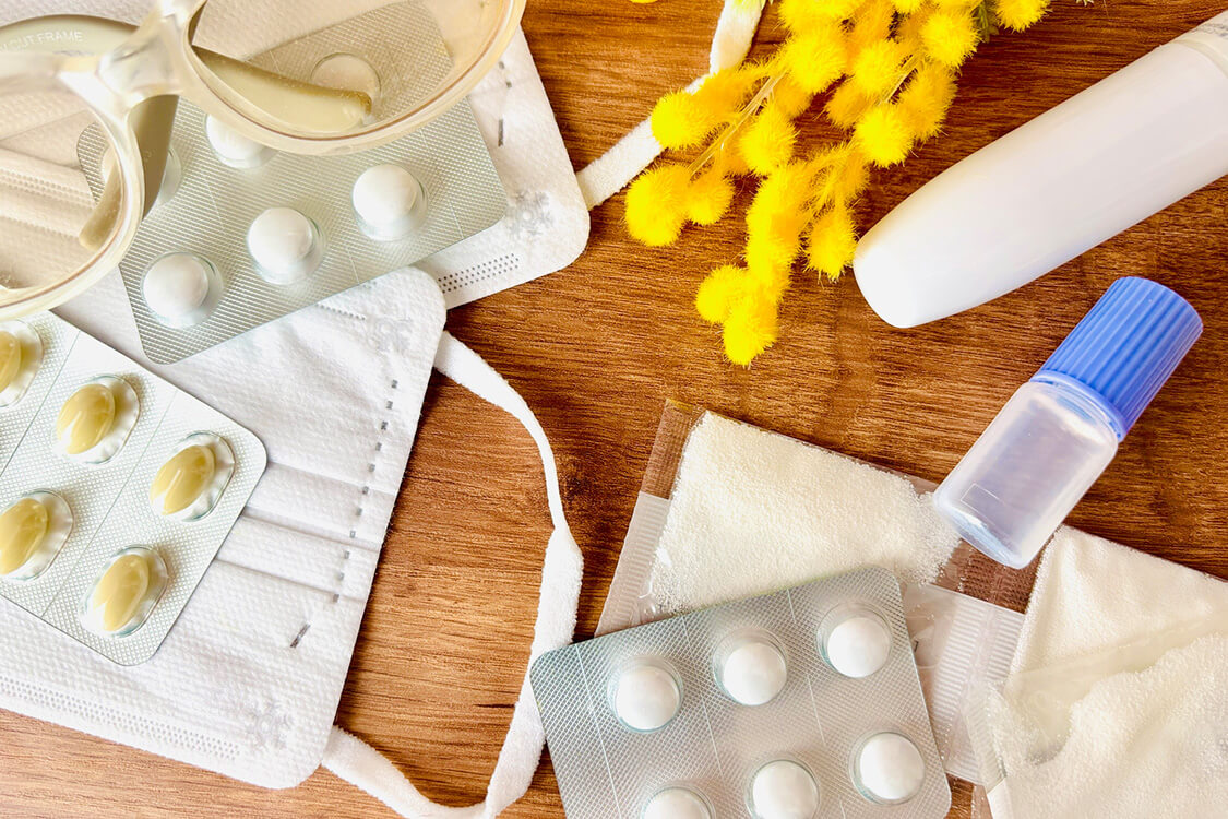 花粉症による目のかゆみや充血、涙目など、特に目の症状がツラい場合には、アレルギー用の点眼薬があります。ただし抗アレルギー点眼薬のなかにはコンタクトレンズを付けているときには使用できないものも。普段コンタクトレンズを使っている人は購入時にパッケージなどを確認しましょう。